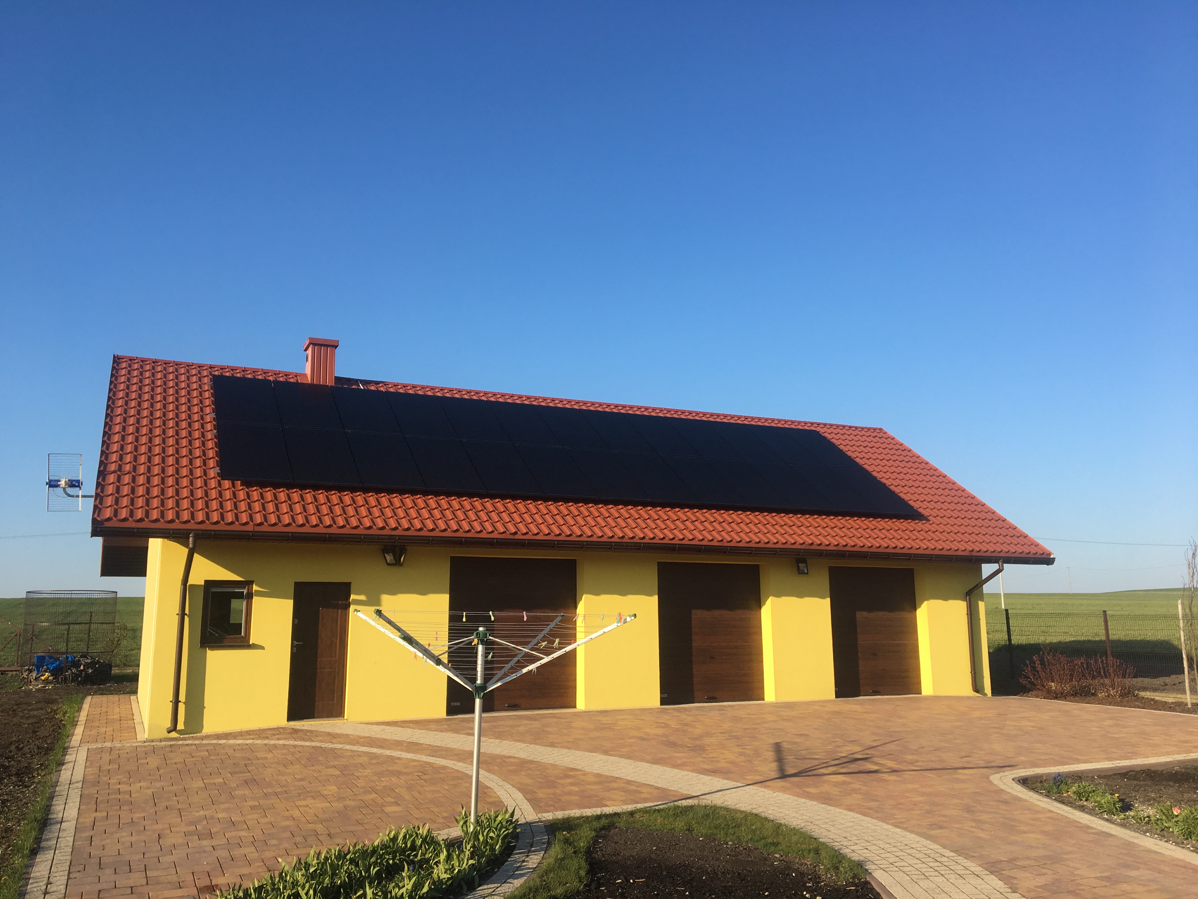Instalacja fotowoltaiczna o mocy 4,96 kW zamontowana na dachu skośnym, przykrytym blachodachówką. Do budowy instalacji zostały użyte moduły firmy Longi Solar, falownik Steca Grid oraz konstrukcja wsporcza KENO.