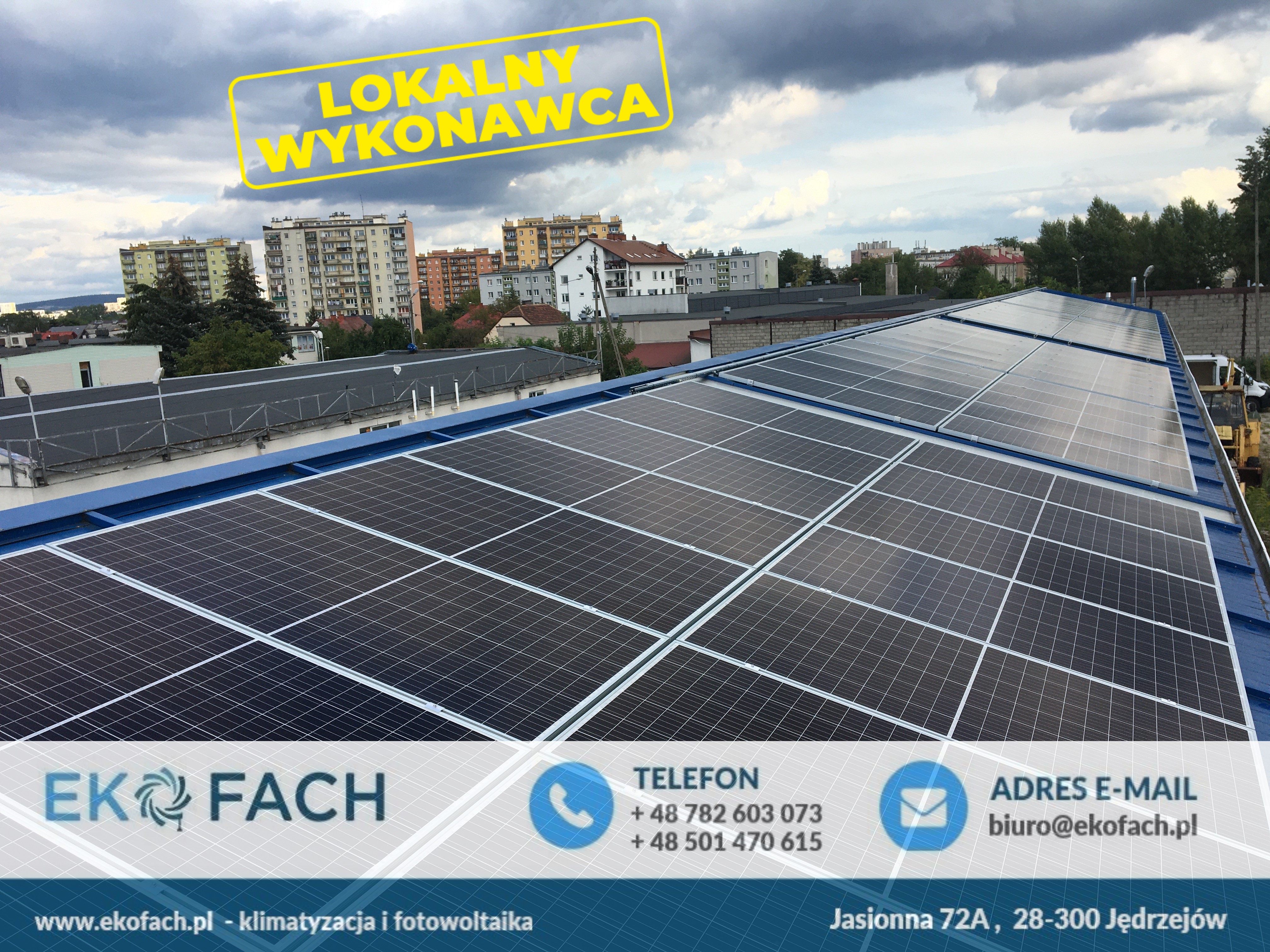 Instalacja fotowoltaiczna o mocy 30 kWp zamontowana na hali produkcyjnej .